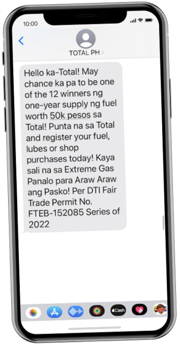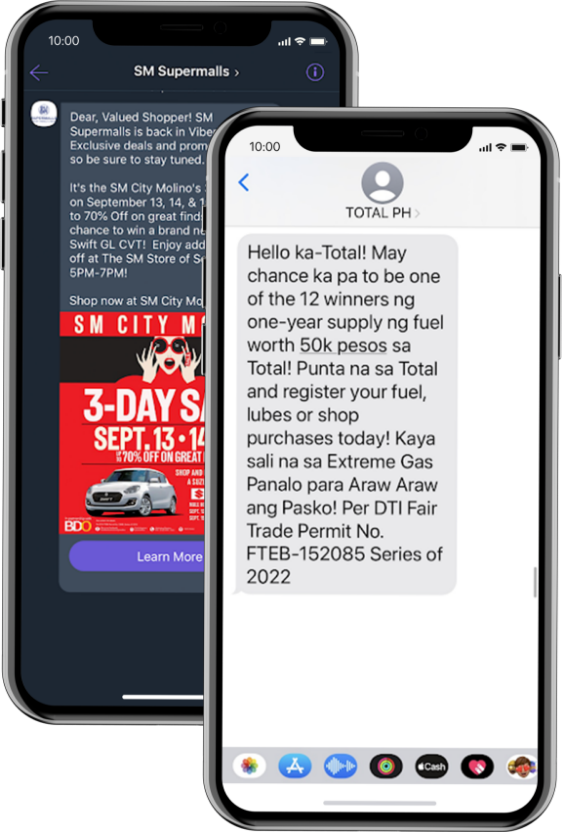 Total Philippines, an energy and petroleum company, maximized the SMS branded messaging solution by powering marketing campaigns, promotions, and rewards. This enabled Total Philippines to have direct and effective customer engagement and increased sales through timely reminders that prompted a call to action.